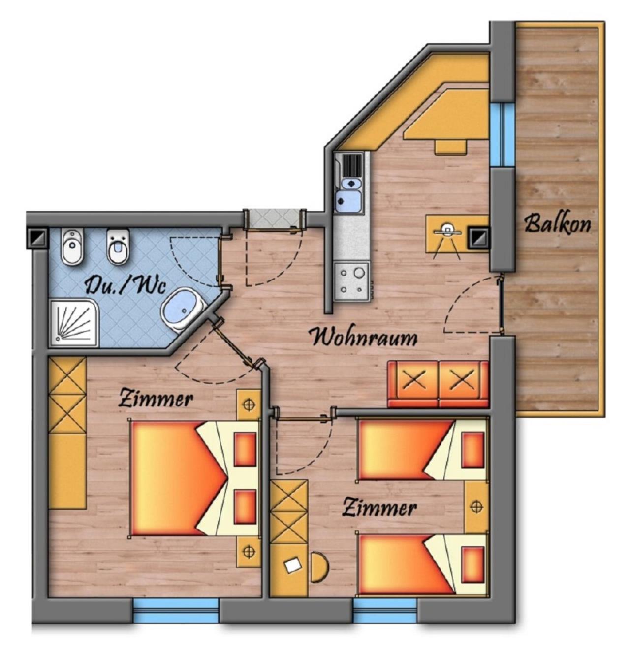 Two-Bedroom Apartment. This apartment features a kitchen, a seating area, 2 separate bedrooms and 1 bathroom with a shower and a bidet. Guests can make meals in the kitchen that has a stovetop, a refrigerator, a dishwasher and kitchenware. Boasting a balcony with mountain views, this apartment also features a tea and coffee maker and a flat-screen TV with satellite channels. The unit has 3 beds. ;
